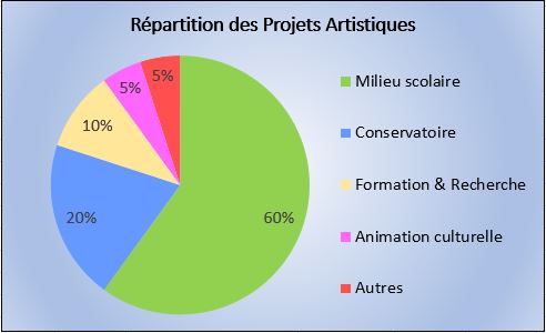 Selon les souhaits de chaque établissement, l’intervenant créé des liens entre les projets afin de faire vivre des démarches artistiques innovantes. Il peut être aussi force de propositions et organiser des actions qui conduiront à se forger une culture artistique. Si la finalité d’un projet s’exprime souvent par le biais d’une prestation dont nous pouvons imaginer la nature, l’essentiel se contemple dans le cheminement qui s’invente en temps réel.